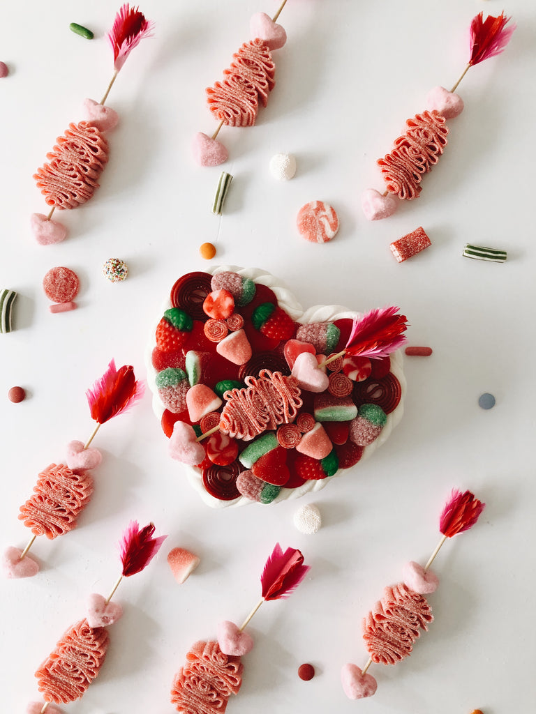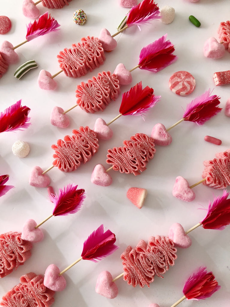 Nuestras tradicionales brochetas, pero con forma de flecha de Cupido.